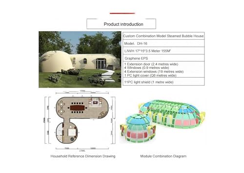 Bubble house installation process Step1, entails the construction of the base platform, which is composed of steel or cement and serves to support the structure. Step2, involves the assembly of modules, which are directly connected using the mortise and tenon method. The material utilized for this assembly is graphene EPS.The installation process is preceded by a detailed explanation of the client’s requirements, and installation drawings are provided. Assembled a standard 28-square-meter house typically requires half a day’s work. Step3, entails the adhesion of the modules, wherein a specialized adhesive is employed to fill the interstices between the modules, thereby enhancing the structural stability of the house. Step4, entails wall treatment, which involves waterproofing, hanging mesh, interior and exterior putty, and paint treatment, all of which serve to enhance the stability and waterproofing of the structure. Step5, involves interior decoration, including the installation of interior tiles or flooring and skirting. Step6, involves the installation of doors and windows. The final step is the painting of the exterior walls. Note:The price of the products linked to this web page is not the final offer, this product is a customized product, I hope you know! This is a bubble house, which is a prefabricated house, the material is graphene eps, the house consists of a number of modules lapped together, it is clean, convenient, moisture-proof, insulated, earthquake-resistant, fire-resistant and heat-resistant. Here are the relevant data for the standard house model (area: 28 m²): Wall thickness: 18 mm. Internal surface area: 59.49 m². External surface area: 68.13 m². Building area: 28 m². Module volume: 10.99 m³. Module weight: approx. 330-350 kg. Module quantity: about 80 pieces. Can be combined, accept customization, currently we have houses ranging from 28m²-408m², also double storey structure. Note:The price of the products linked to this web page is not the final offer, this product is a customized product, I hope you know!