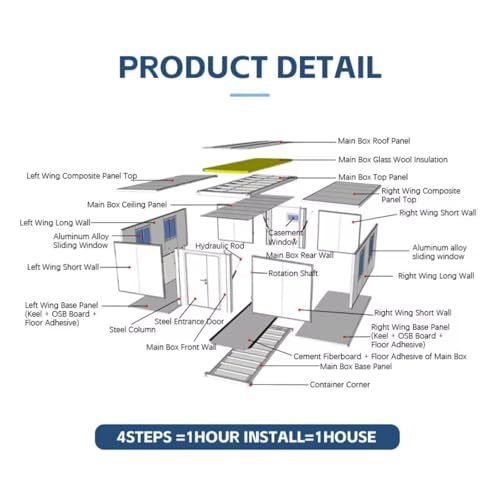 【Quick and Easy Assembly】: Assembling this foldable house is quick and straightforward, requiring no specialized tools or skills. The intuitive design includes pre-attached components and clear instructions, enabling setup in under an hour. This makes it perfect for urgent situations or temporary use, such as disaster relief or backyard offices.