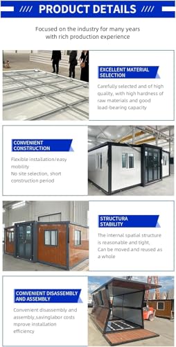Various Customization: This foldable tiny houses offers a range of customisable styles and accessories to meet specific needs, including the customizable interior layout, size, and features. For more details or enquiries, please leave us a message before purchasing.